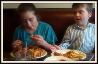Today we had no daycare kids until 8:00PM so after church we went out to Texas Steakhouse for lunch. The food was delicious and it was a nice change of pace. I took some pictures but the light wasn't very good for taking pictures with a phone camera. So they're a little dark.